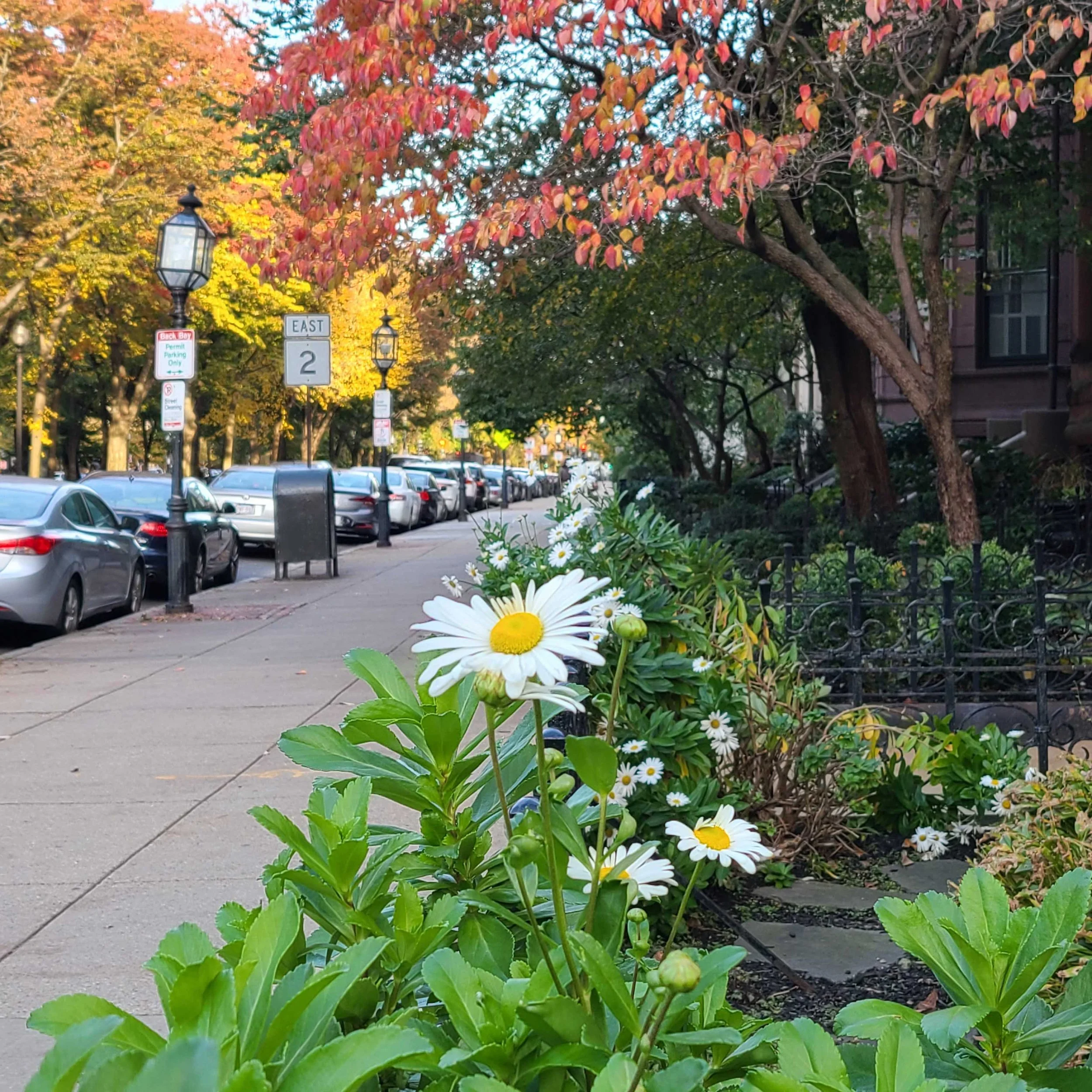 Surprise! You can find November daisies amidst the fall color on Commonwealth Avenue in the Back Bay!